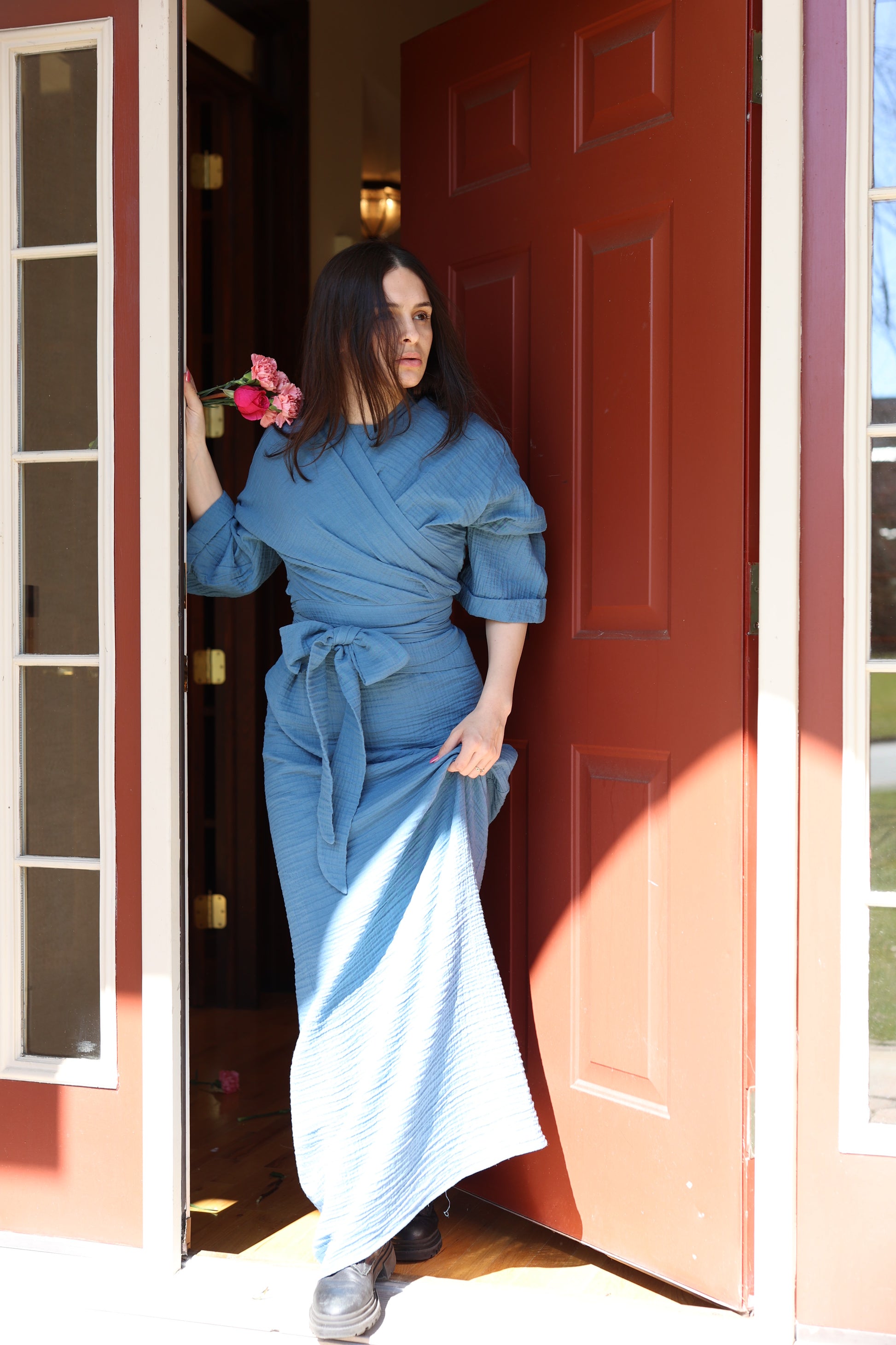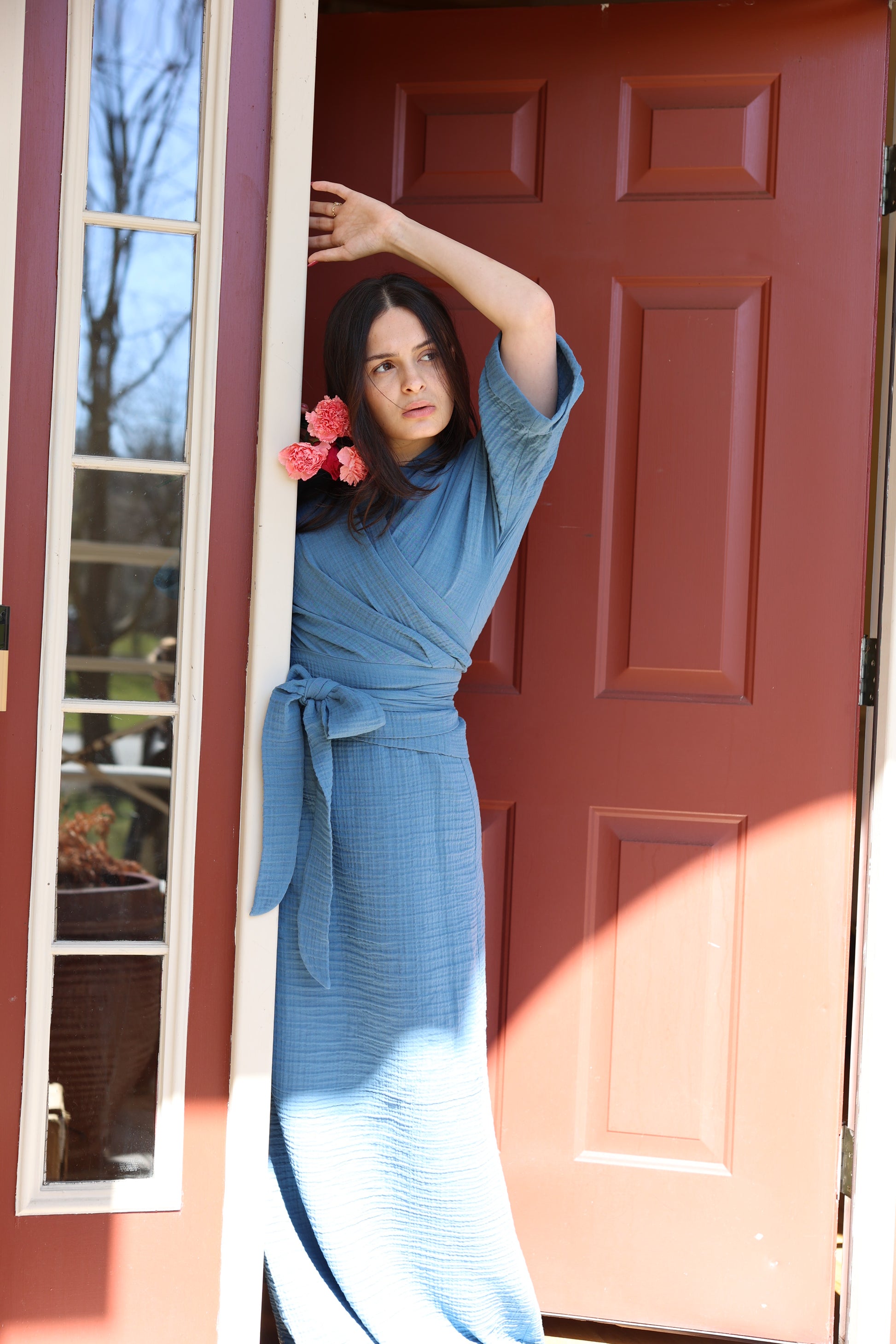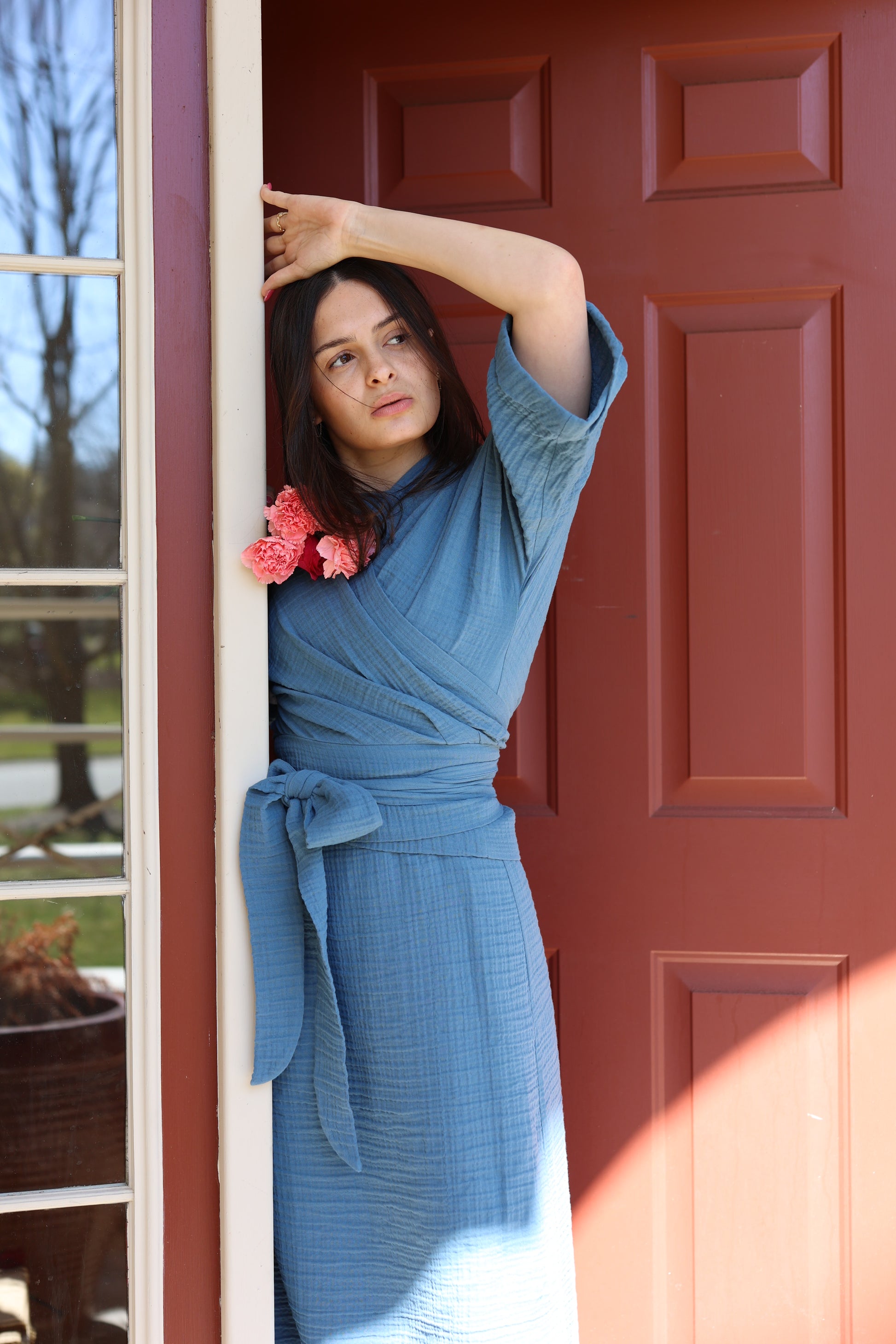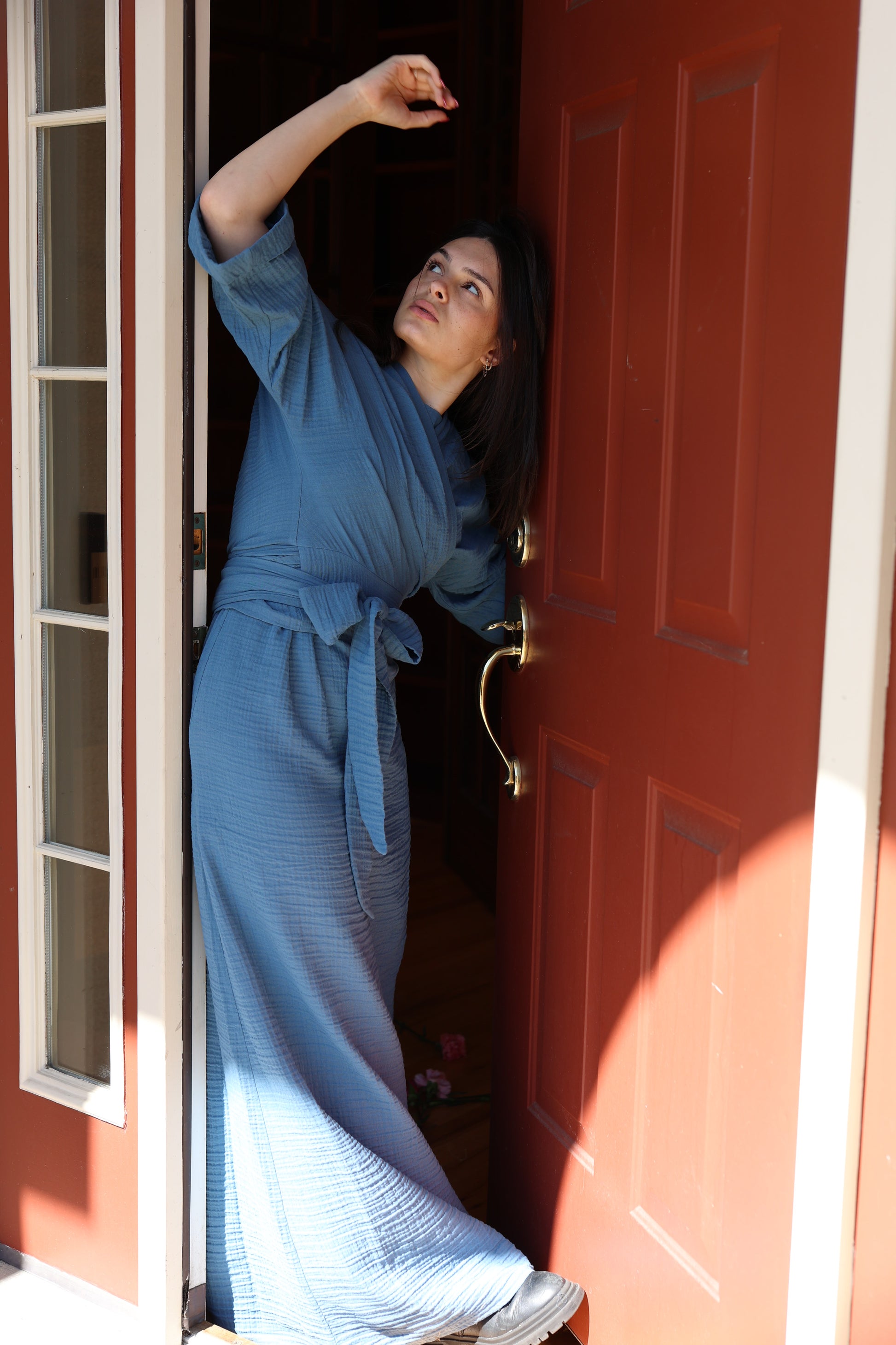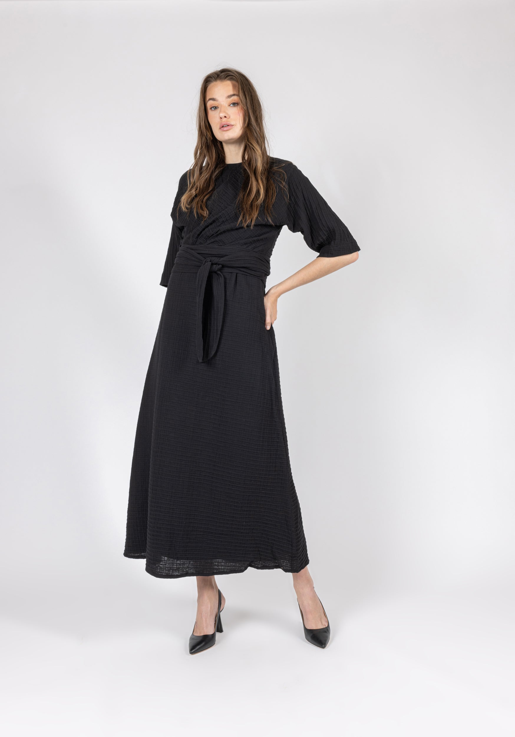 Upgrade your wardrobe with our Hamilton Jumper & Wrap Shirt Set. Made from soft gauze fabric, this versatile set includes a comfortable midi length jumper and a matching wrap shirt top. Effortlessly elevate your style and feel comfortable all day long. Perfect for any occasion.
